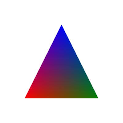 The "hello, world" of graphics: a triangle with different colored vertices.
